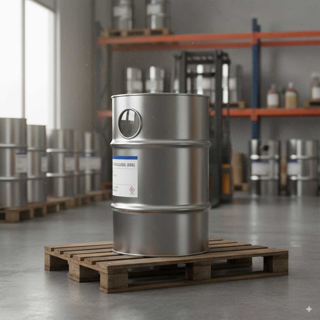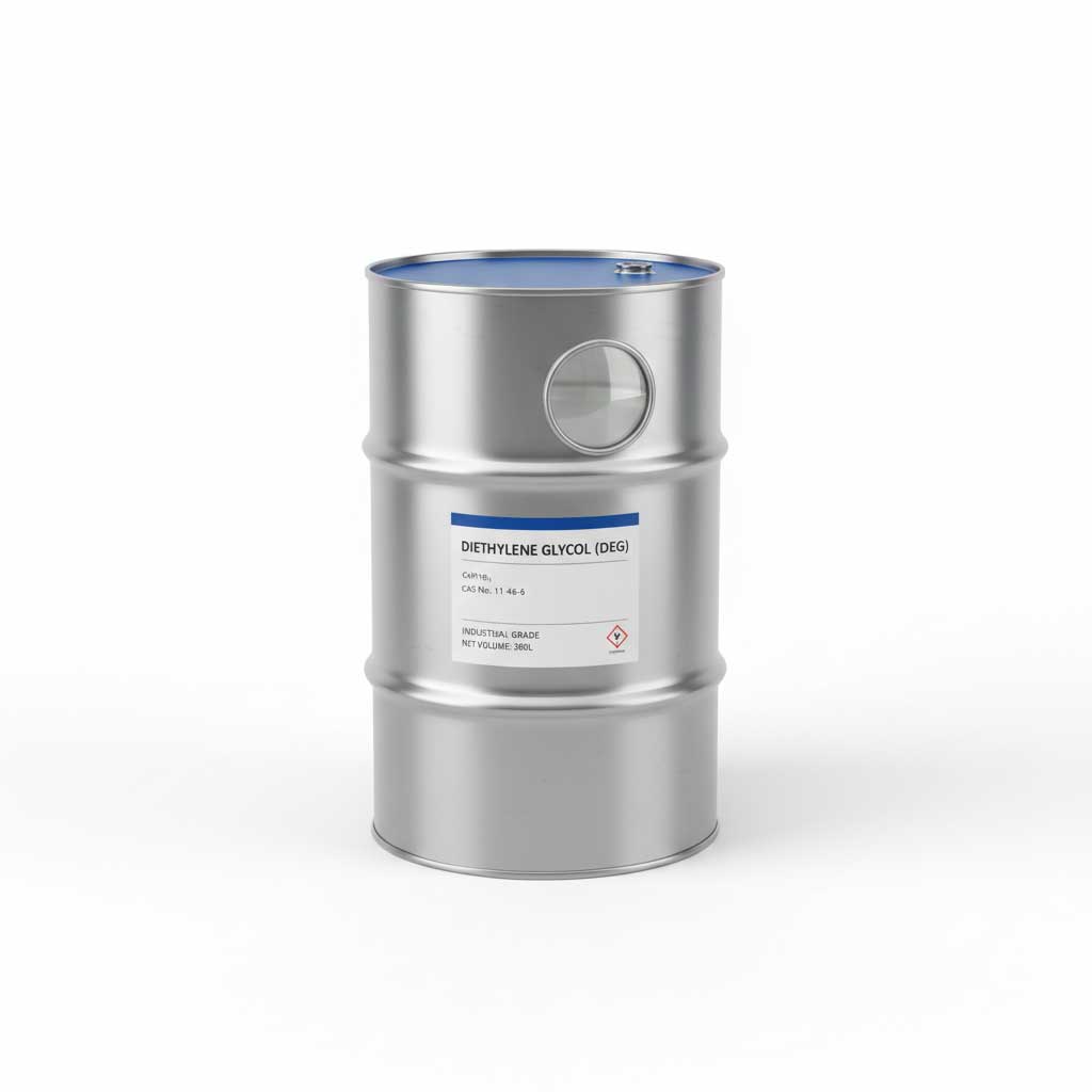 دی اتیلن گلیکول (DEG) یک ترکیب شیمیایی آلی از خانواده گلیکولهاست که بهصورت مایع شفاف و بدون رنگ دیده میشود. این ماده از واکنش اتیلن اکساید با آب تولید میشود و دارای خاصیت جاذب رطوبت و حلالیت بالا در آب و بسیاری از حلالهای قطبی است.